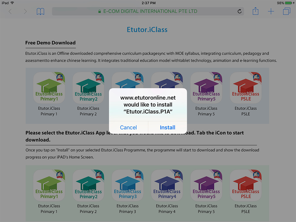 With your iPad by using Safari / Chrome. Tap on the selected level of “Etutor.iClass” icon. Tap “