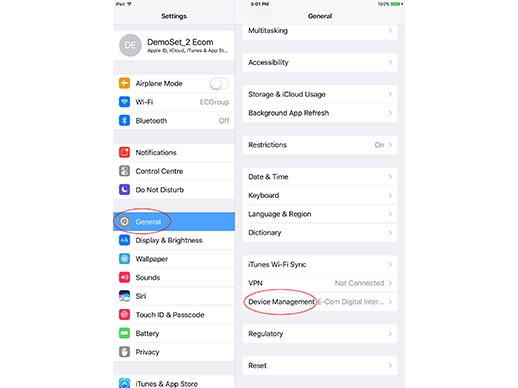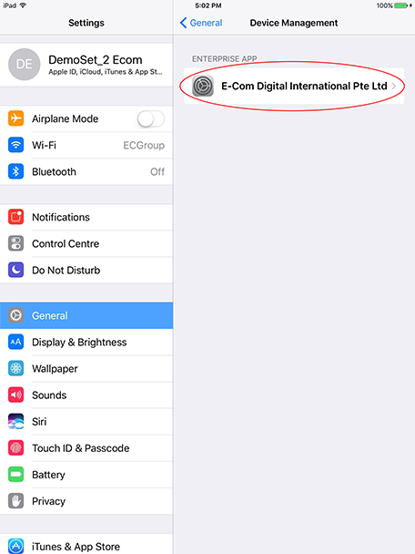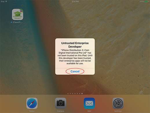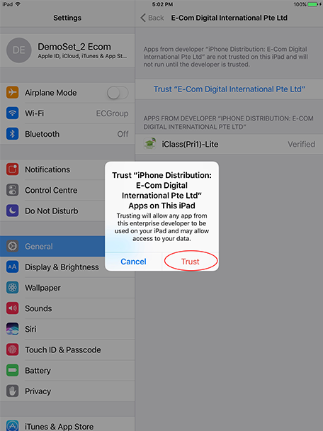 While installing the Etutor.iClass App, if screen pop-up Untrusted Enterprise Developer, please tap