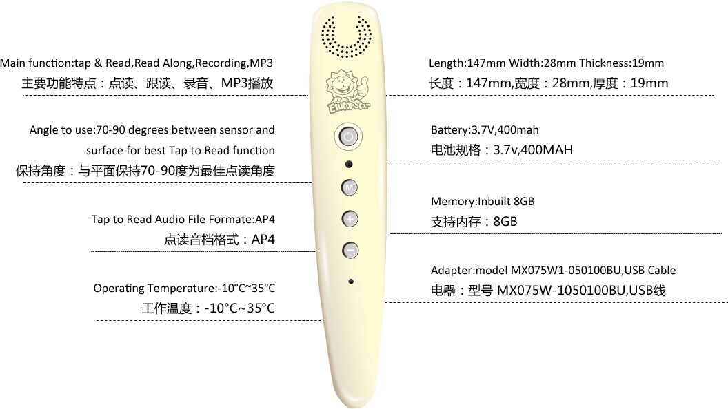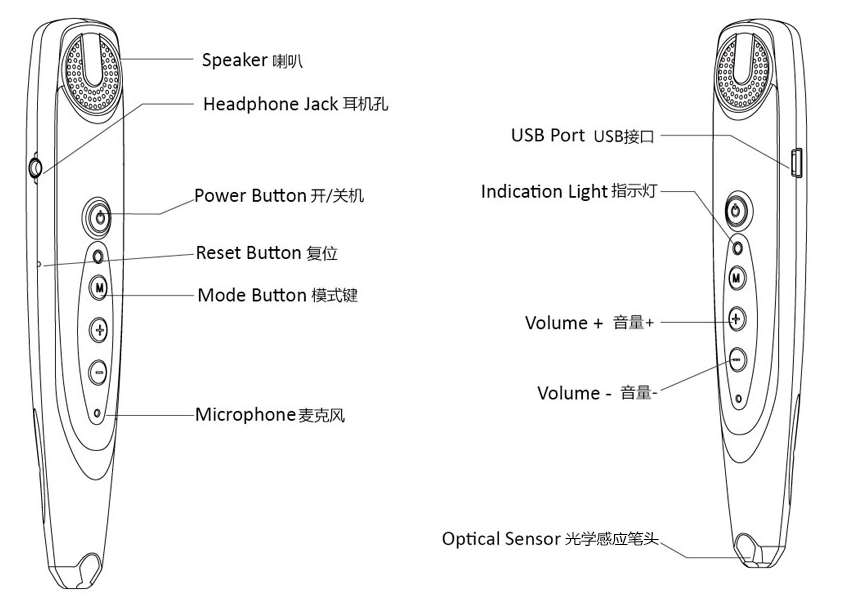 笔状造型,小巧轻便,携带容易,使用简便;可以随时随地,随点随读。